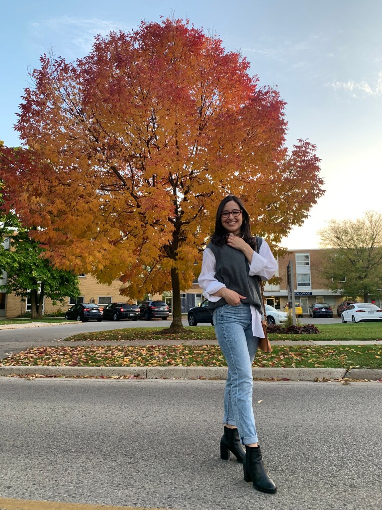 Oversized sweaters, summer tops that you can combine with a jacket or blazer, mom jeans, cargo pants, and layers in jewelry are trends that are showing on this season and I was so excited to experiment, also, adding a pop of color with my background, I am so fan of watch the change colors of trees during fall and I am so happy with the results that I catched.